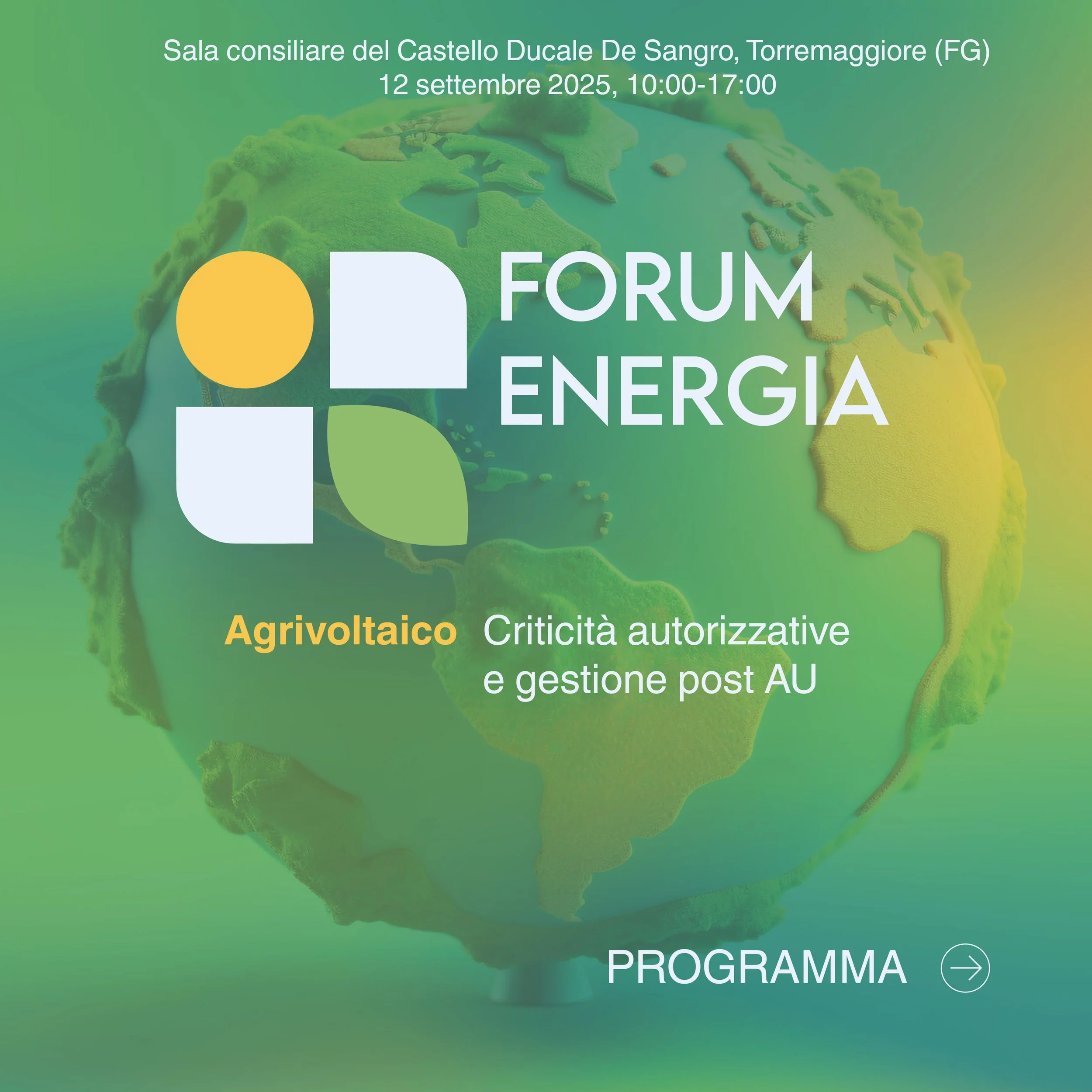NEWS ED EVENTI Cristina Pia Diomedes 16/09/25 Cristina Pia Diomedes 16/09/25 II edizione Forum Energia: dall’autorizzazione alla gestione, l’agrivoltaico in Capitanata Scopri di più Cristina Pia Diomedes 08/09/25 Cristina Pia Diomedes 08/09/25 Forum energia 2025: il programma Scopri di più Cristina Pia Diomedes 27/08/25 Cristina Pia Diomedes 27/08/25 Renewable Consulting ottiene la certificazione ISO 9001:2015 Scopri di più Cristina Pia Diomedes 04/07/25 Cristina Pia Diomedes 04/07/25 II edizione forum energia Scopri di più Cristina Pia Diomedes 26/05/25 Cristina Pia Diomedes 26/05/25 Renewable Consulting con Stelle Nascenti per il musical “Peter Pan” Scopri di più Cristina Pia Diomedes 05/05/25 Cristina Pia Diomedes 05/05/25 L’incastro perfetto: quando la formazione diventa energia condivisa Scopri di più Cristina Pia Diomedes 16/04/25 Cristina Pia Diomedes 16/04/25 FORUM ENERGIA 2025 Scopri di più Cristina Pia Diomedes 31/03/25 Cristina Pia Diomedes 31/03/25 “nuoto nello zaino”: Renewable Consulting in partnership con la scuola Scopri di più Cristina Pia Diomedes 13/03/25 Cristina Pia Diomedes 13/03/25 key - The Energy Transition Expo Scopri di più Cristina Pia Diomedes 24/02/25 Cristina Pia Diomedes 24/02/25 in CAMPO CON FCD sporting torremaggiore Scopri di più Cristina Pia Diomedes 04/02/25 Cristina Pia Diomedes 04/02/25 Valente Enterprises Holding SPA: unione e innovazione nelle energie rinnovabili Scopri di più Cristina Pia Diomedes 11/12/24 Cristina Pia Diomedes 11/12/24 Al via il terzo anno di collaborazione tra Renewable Consulting e Daunia Basket School: energia per giovani e territorio Scopri di più Guest User 22/11/24 Guest User 22/11/24 con il VI Forum Agroecologia Circolare continua la collaborazione con legambiente Scopri di più Cristina Pia Diomedes 19/11/24 Cristina Pia Diomedes 19/11/24 Greencells Agrosolar partner del VI FORUM NAZIONALE AGROECOLOGIA CIRCOLARE di LEGAMBIENTE Scopri di più Guest User 28/08/24 Guest User 28/08/24 festambiente 2024 Scopri di più Guest User 29/07/24 Guest User 29/07/24 renewable consulting presenta LA simulazione di un impianto agrivoltaico Scopri di più Guest User 01/07/24 Guest User 01/07/24 Renewable consulting offre sei borse di studio ai giovani di torremaggiore Scopri di più Guest User 25/06/24 Guest User 25/06/24 un’opera fotografica per l’impegno sul territorio Scopri di più Guest User 20/06/24 Guest User 20/06/24 FORUM ENERGIA 2024 Scopri di più Guest User 11/06/24 Guest User 11/06/24 FORUM ENERGIA 2024 Scopri di più Post meno recenti